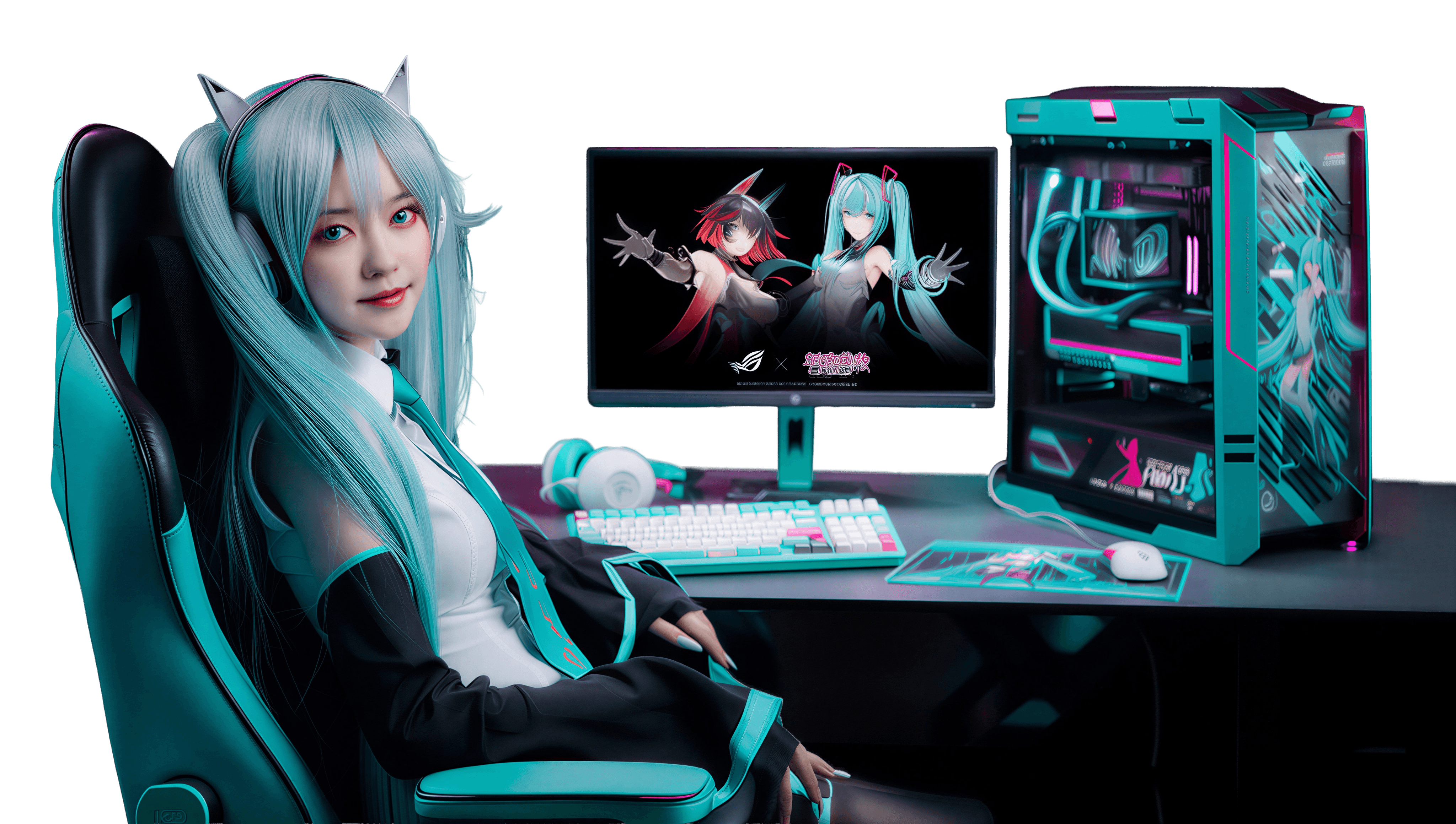eclado mecánico de precisión y mouse inalámbrico ultraligero. Control total y agilidad inspirada en Miku para cada movimiento.